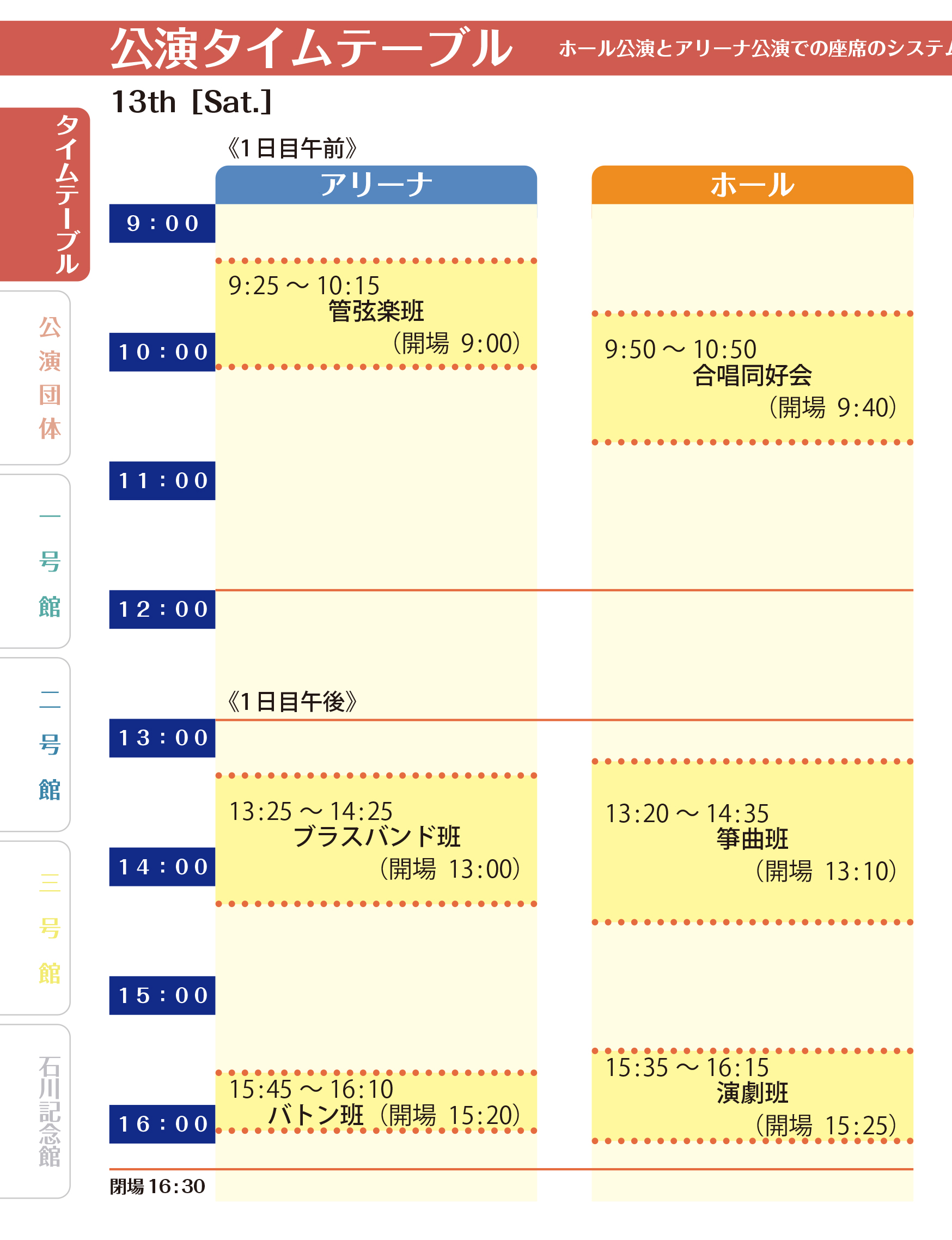 アリーナ公演・ホール公演・@階段教室タイムテーブル