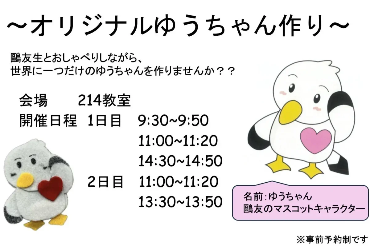 鷗友生と一緒に、鷗友のマスコット「かもめのゆうちゃん」を作ろう!!