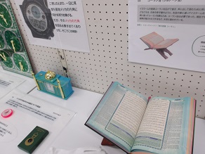 1月17日まで2号館2階の白木で、国立民族学博物館よりお借りした「イスラムの暮らし」を展示していました。こちらは中1地理の授業の関連展示です。イスラム地域の衣服や、コーランなど、実物が多く展示されていて、授業で学んだ遠い地域のことが身近に感じられる機会になりました。