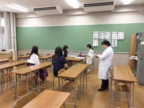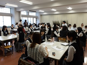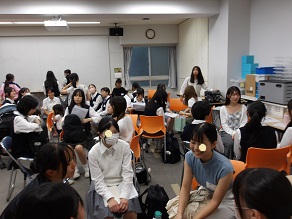その後、卒業生参加者の現在の仕事や専攻でグルーピングし、生徒の参加者の希望とマッチングさせて、卒業生1人につき2~5人の鷗友生が話を聞きました。これを2回転でおこなったあと、生徒が自由に部屋を移動してさまざまな卒業生と自由に話す時間が設けられ、生徒は配布されたプロフィール資料をもとに先輩方のいる教室を訪ねていました。