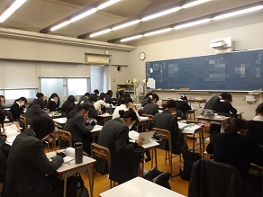 高校1年生は中学2年生に勉強を教える会の準備をしていました。