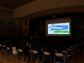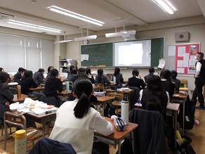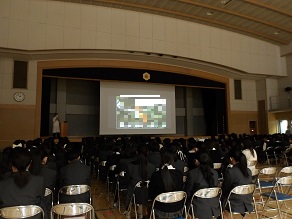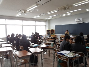 中学3年生は体育館で修学旅行の事前学習でした。「沖縄の色々な植物・動物を知ることができました。水族館や伊江島などで実際に自然を見たり、感じたりすることが楽しみです。美ら海水族館ではマナティやイルカ、ジンベイザメが見られるとガイドブックに書いてあったので見てみたいです。また、今回学んだ戦争の内容を踏まえつつ沖縄に望みたいです」という感想を聞きました。