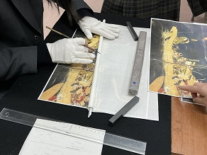 今日は美術科の先生が模写の技法である「上げ写し」の実演と体験をおこなってくださいました。