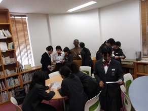 まずはクラスでお話などをきいたあと、3人1組に謎に答えながら校内を巡る「校内アドベンチャー」に挑みました。
