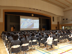 高校2年生はホールで合同ホームルームのあと、自教室でのホームルームがあり、自己紹介などをおこなっていました。