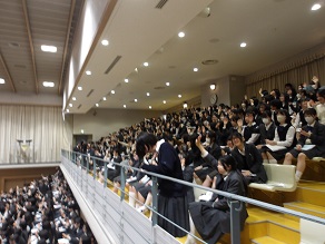 高校1年生はホールで合同ホームルームがあり、進路についてのお話を聞ききました。