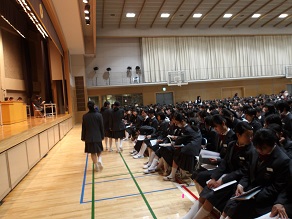 3,4限は体育館に全校生徒が集まり、校友会総会でした。校友会の決算報告や活動報告、生徒会役員の退任、就任挨拶などがありました。