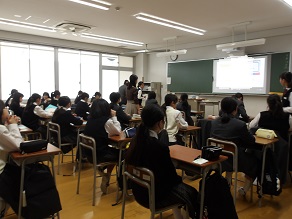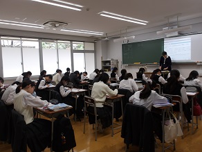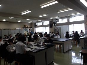 6組は生物でした。全員が白衣を着て生物室で授業を受けていました。