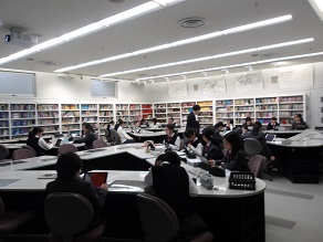 3組はLLの授業でした。英語の本がたくさんあるLLライブラリでの授業でした。