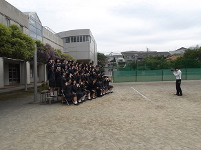 高校3年生は卒業アルバムの撮影をおこなっていました。藤棚の藤が咲き始めたのでその前でクラス写真を撮ったのですが風が強くてなかなかタイミングが難しかったようです。