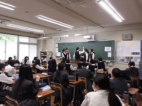 中学3年生は国際部からのお話を聞いたり、運動会に向けたお話を聞いたりしました。