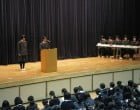 13日の1〜2限に来年度中学生徒会、3〜4限に来年度高校生徒会の新役員選出選挙の立会演説会が行われました。