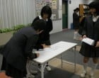 中学はアリーナ、高校は学習室に開設された投票所にクラスごとに行って投票しました。