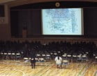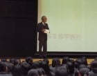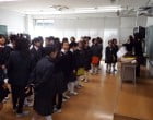 高校2年生はアリーナで、関西修学旅行の結団式を行いました。団長からの挨拶の後、交通や生活の注意がありました。
