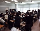 高校3年生は自教室で、来週のテーブルマナーの準備をしたり、模擬試験の利用法についての注意などを行いました。