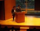 中学3年生はホールで、沖縄修学旅行の結団式を行いました。生活上の最終注意の後、生徒の団長が決意表明を行いました。