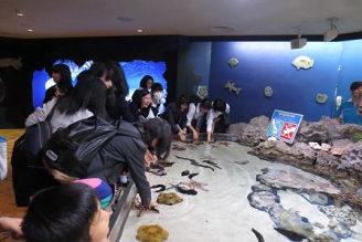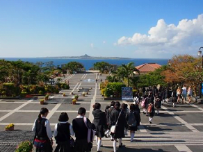 羽田空港に集合、機内から伊江島が見えました。 お天気が良く気持ちいいです。 那覇空港からバスに乗り美ら海水族館へ。 たくさんの魚を見て楽しみました。 宿泊先のホテルの人にご挨拶しておいしいご飯をいただきました。