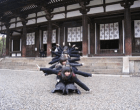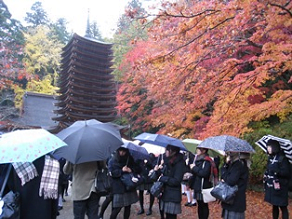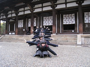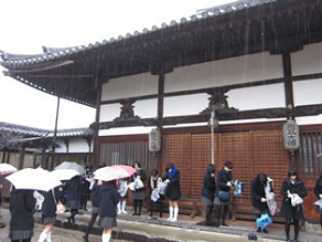 今日は時々雨模様。そのため、甘樫の丘に上るのは断念しました。 談山神社からはじまって、飛鳥寺、石舞台古墳、法隆寺、唐招提寺をクラスごとに巡ります。 甘樫の丘をカットした“おかげ”で、法隆寺や唐招提寺にたっぷり時間をかけることができました。 夕飯は義経鍋でした!!