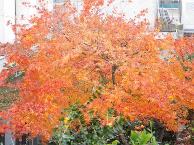今日は、ジュウガツザクラ、サザンカ、ケヤキ、イチョウ、モミジ×4、ミカン、ナツミカン、ムベ、セイヨウイボタノキです。
