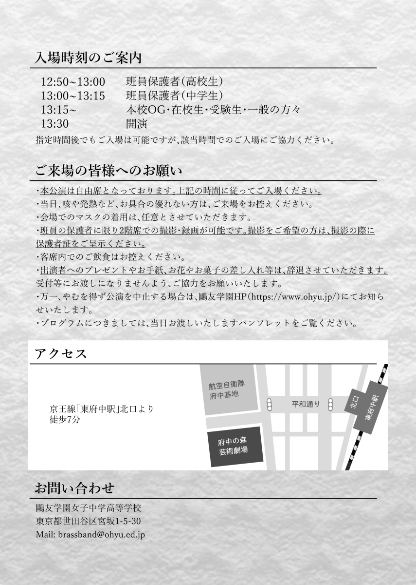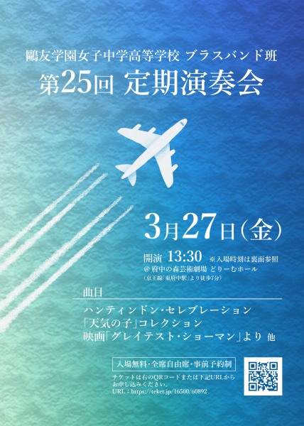 鷗友学園ブラスバンド班 第25回定期演奏会のご案内
